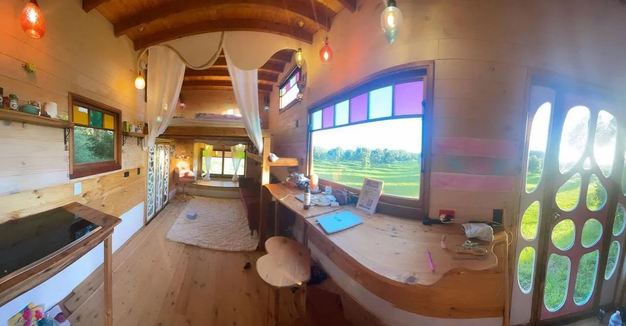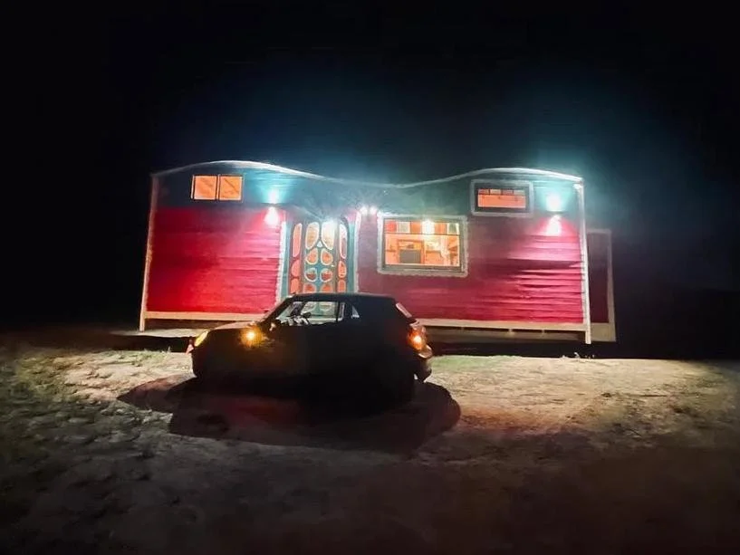 We now offer stylish glamping accommodation in a luxuriously decorated tiny away‑home. The unit is generator‑powered and includes a private shower and toilet for comfortable, off‑grid stays.